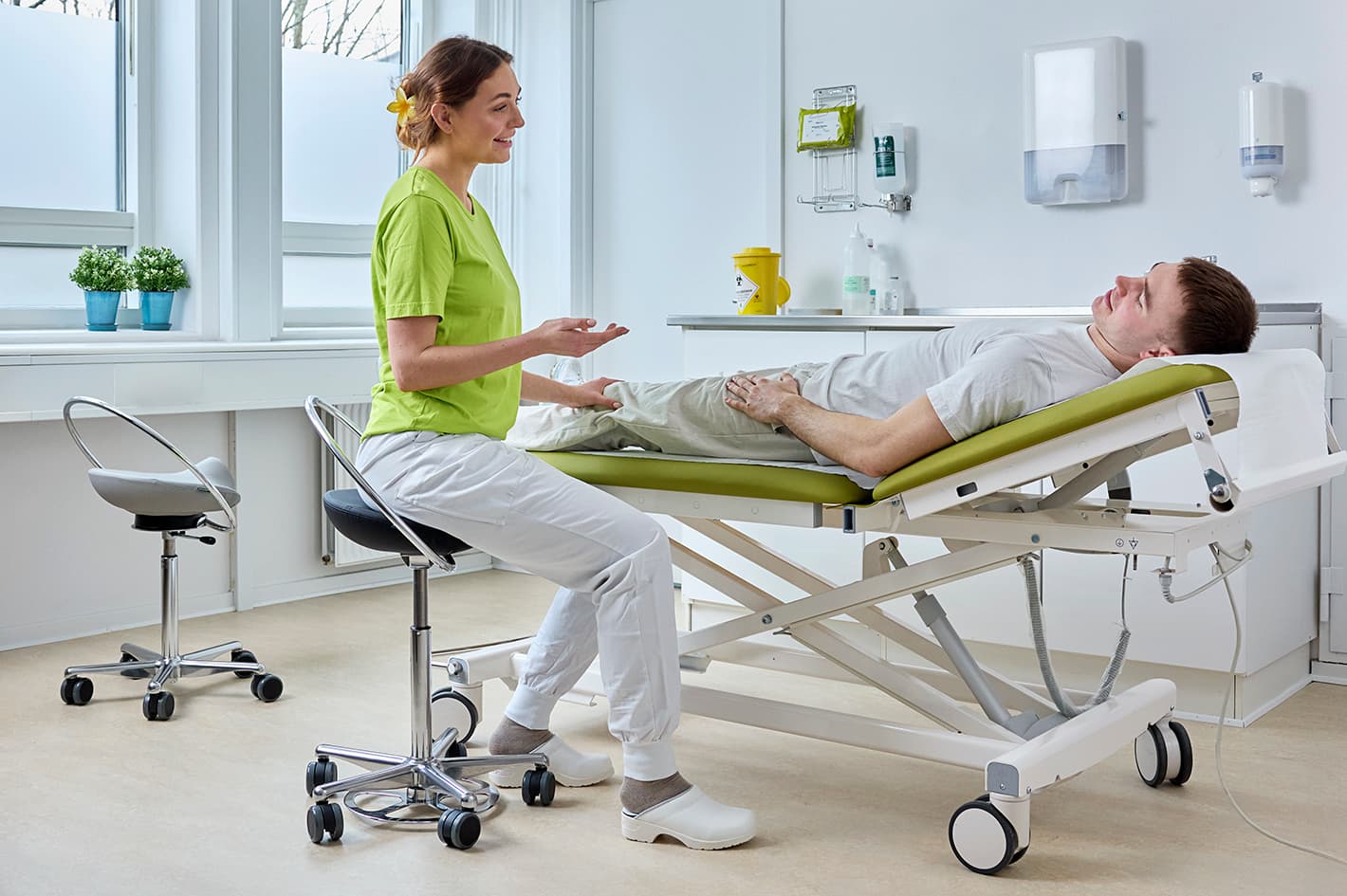 Wenn Sie im Gesundheitswesen arbeiten, müssen Sie sowohl körperlich als auch geistig leistungsfähig sein. Es ist allgemein bekannt, dass die Arbeitsbelastung zu hoch und der Zeitdruck zu groß ist. Körper und Geist werden maximal belastet, und niemand kann das auf Dauer durchhalten. Mit unseren Stühlen versuchen wir, in Situationen, in denen Arbeit im Sitzen ausgeführt werden kann, Entlastung zu schaffen. Für viele unserer Kunden eröffnet sich eine völlig neue Welt, wenn sie einen solchen Stuhl ausprobieren. Sie sind es gewohnt, auf traditionellen Stühlen zu sitzen, auf denen sie durch Rückenlehnen, Armlehnen und zu niedrige Sitzhöhe passivisiert und festgehalten wurden.